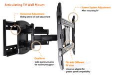 Weisser Full Motion TV Mounts offer the ultimate in adjustment and perfect visibility from any point in the room. Their full motion TV mounts allow consumers to pull their flat screen TV away from the wall, tilt, pan and swivel it for ensuring the optimal viewing angle. Weisser Full Motion Wall Brackets offer no compromise, state of the art engineering, and durability, with immense savings.
