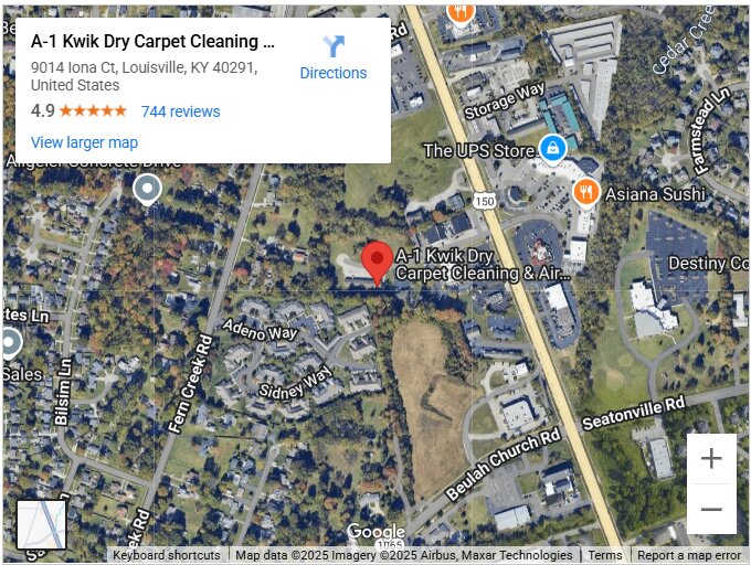 A-1 Kwik Dry is a trusted provider of residential and commercial cleaning and restoration services, delivering top-quality results to homeowners and businesses. With over 30 years of experience, the Louisville-based company offers carpet, upholstery, tile and grout, and air duct cleaning, as well as granite countertop restoration. Serving the greater Louisville area, A-1 Kwik Dry is committed to eco-friendly solutions and customer satisfaction.