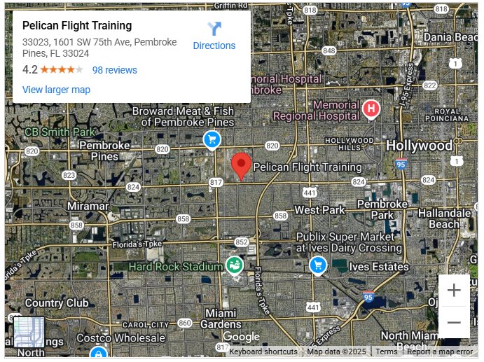 Based in South Florida, Pelican Flight Training offers year-round flying conditions and access to controlled airspace near major airports like Miami and Fort Lauderdale. Its prime location provides optimal weather, complex traffic, and diverse airspace, ideal for training international flight students.