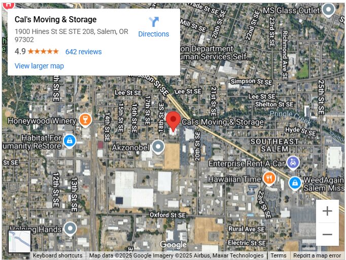 Operating from its Salem headquarters, Cal’s Moving & Storage maintains a strong presence throughout the Willamette Valley. Beyond Salem, the company serves Beaverton, Corvallis, and Albany, providing tailored solutions across a wide area. Recognized as one of the most dependable moving companies Salem Oregon has, the team continues to offer flexible relocation solutions wherever customers need to go.