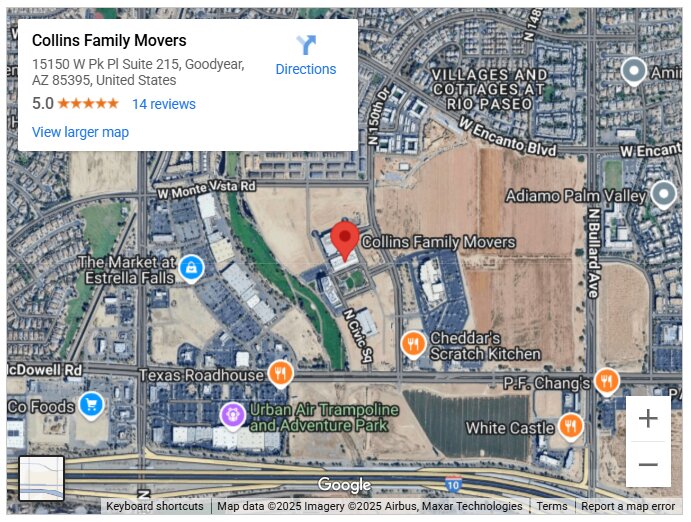 Moving to Phoenix has been an attractive option for many because of its relatively low cost of living compared to other major metropolitan areas, year-round sunshine, and diverse cultural scene. Recognizing this, Collins Family Movers brings its proven expertise and customer-first philosophy to meet the growing demand. Its location positions it to efficiently serve the entire metro area and surrounding suburbs.