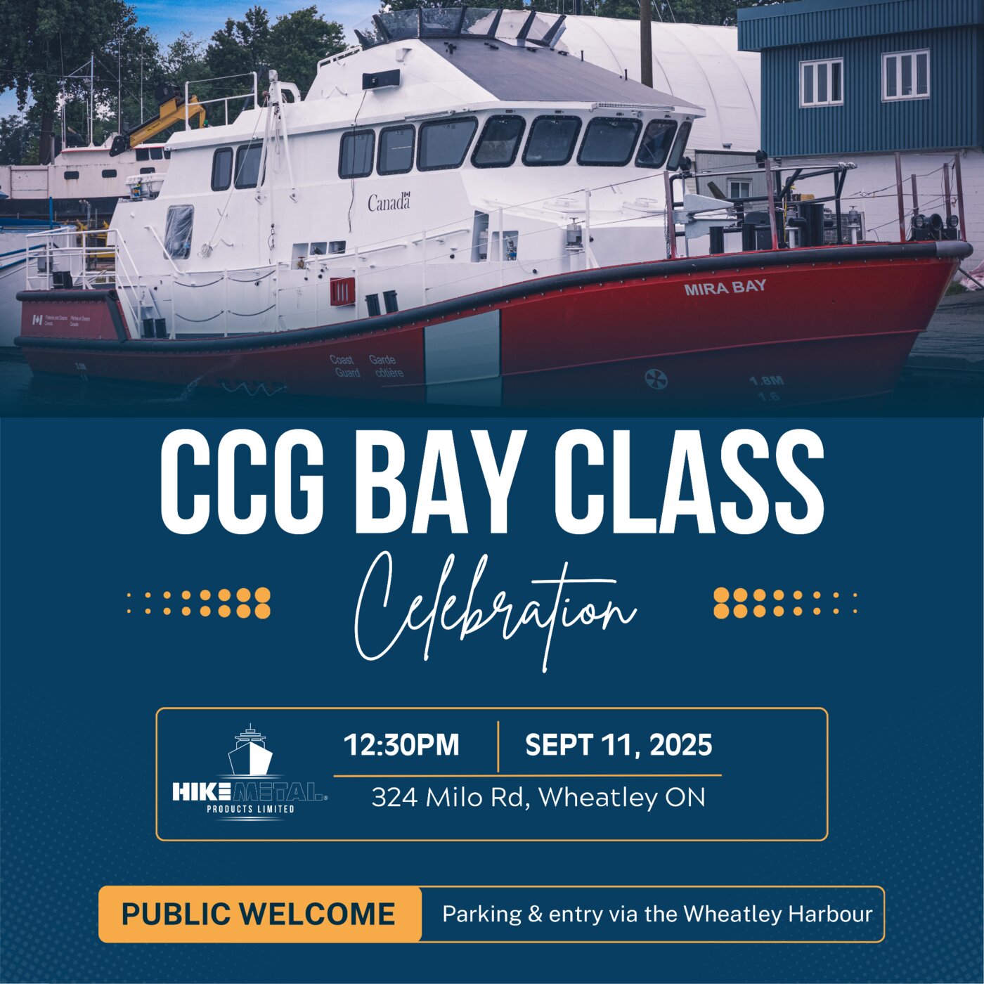 Hike Metal, a leader in custom vessel construction since 1958, will host a private celebration on Thursday, September 11, 2025, from 11:00 AM to 1:30 PM, marking the completion of its 10th and final Bay Class vessel for the Canadian Coast Guard.