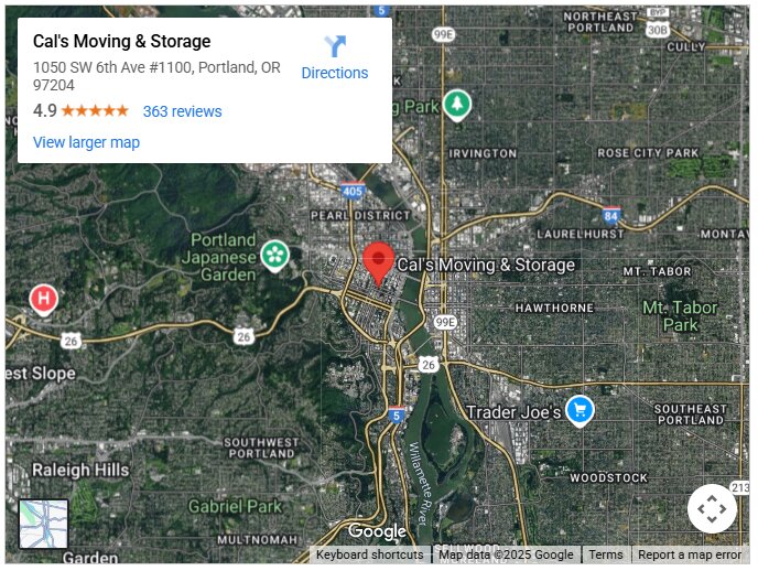 Serving Portland, Beaverton, Hillsboro, Tigard, Lake Oswego, and other nearby communities, Cal’s Moving & Storage has built a strong presence throughout the Portland metro area. Its focus on high-quality customer care, combined with years of experience, makes it one of the top choices for anyone searching online for trusted movers in and around Portland.